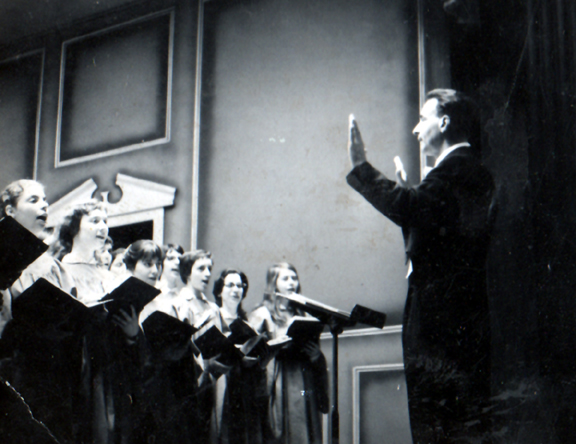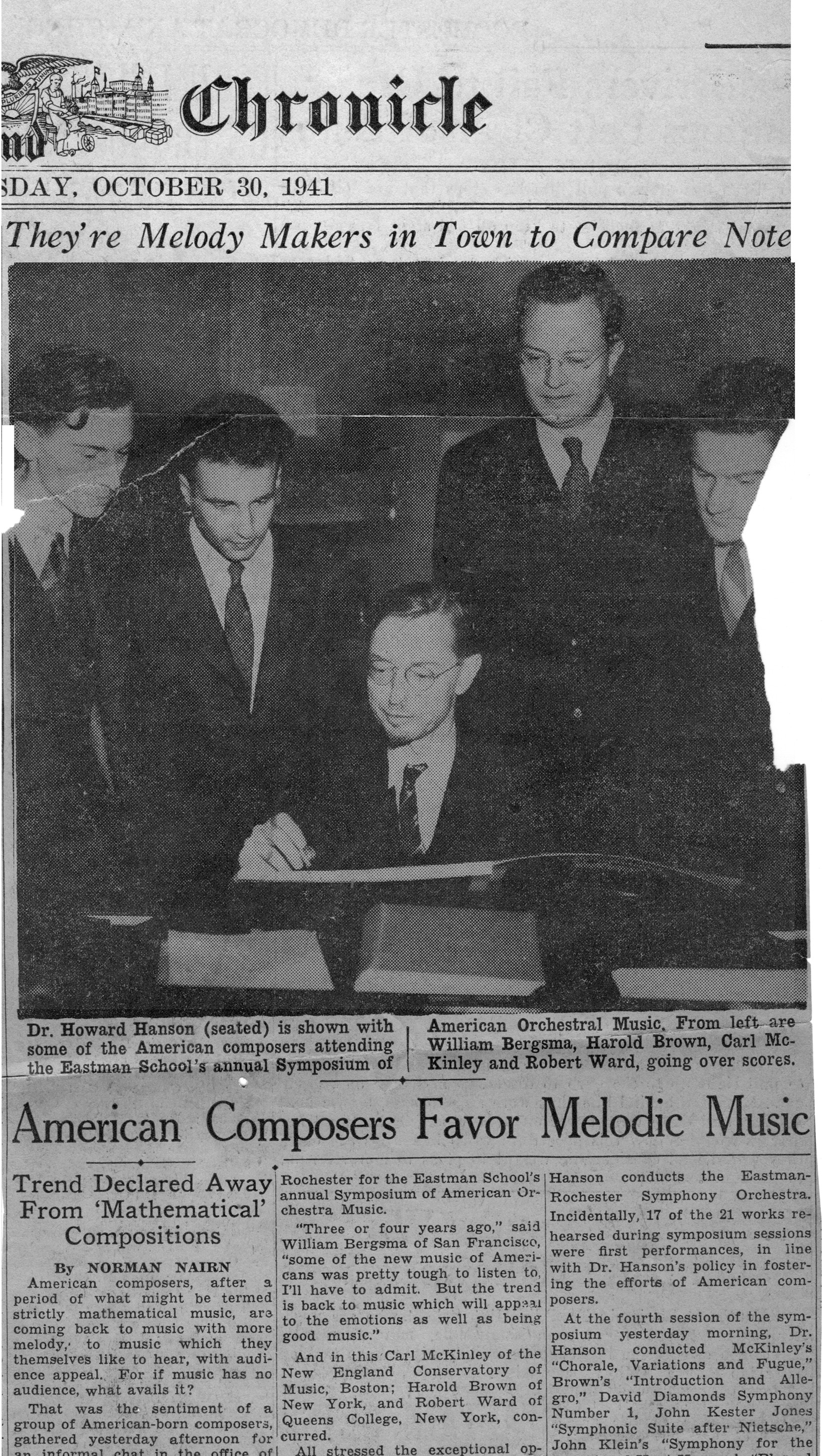 In 1941, Harold Brown was a recognized American composer. Howard Hanson, seated above, directed readings of some of his music, which you can hear on our Music page. |