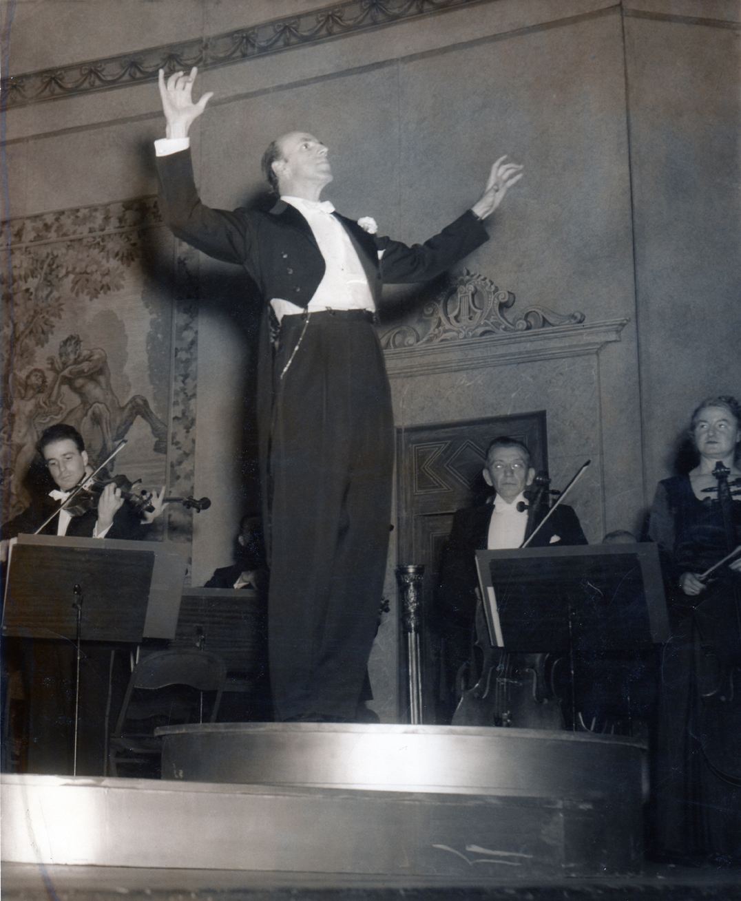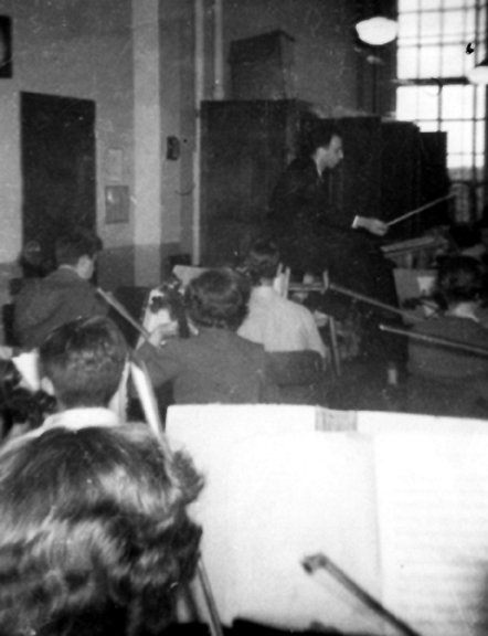 That's Harold on the left, playing viola, Leon Barzin conducting